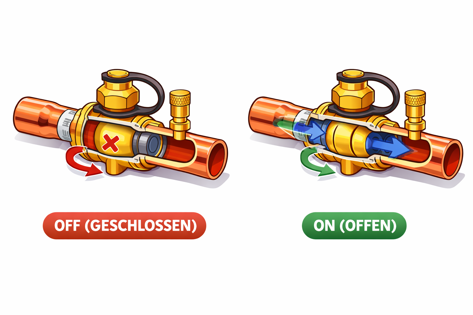 Sie öffnen oder schließen Kältemittelleitungen vollständig.