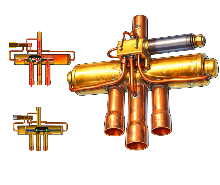 Seine Aufgabe ist es, die Strömungsrichtung des Kältemittels umzudrehen.